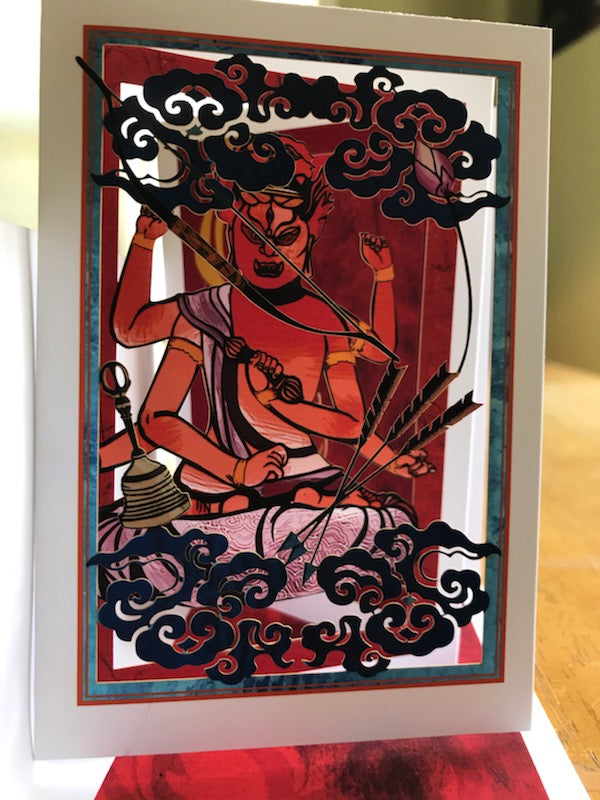 Three POPupfoldOUTs created for the San Francisco's Asian Art Museum exhibit, Heavenly Bodies. This image depicts Aizen Myoo, the king of passion.
