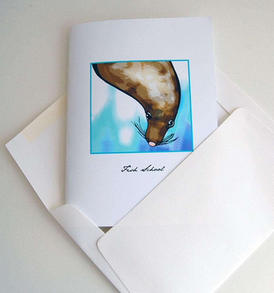 If you can't get to the ocean any time soon and miss the salt water this card is for you. Open it up and dive into Monterey Bay with this happy-go-lucky sea lion in his underwater kelp forest environment.