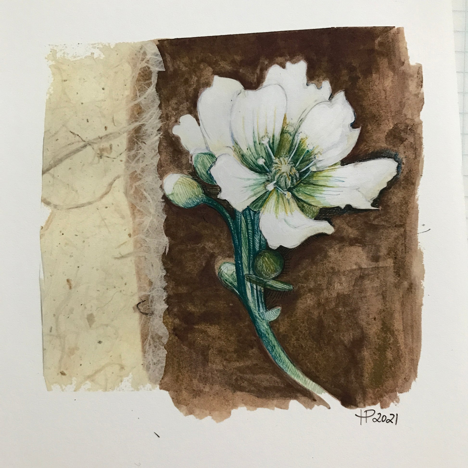 Original pen and ink, mixed media image of Venus Flytrap flower.